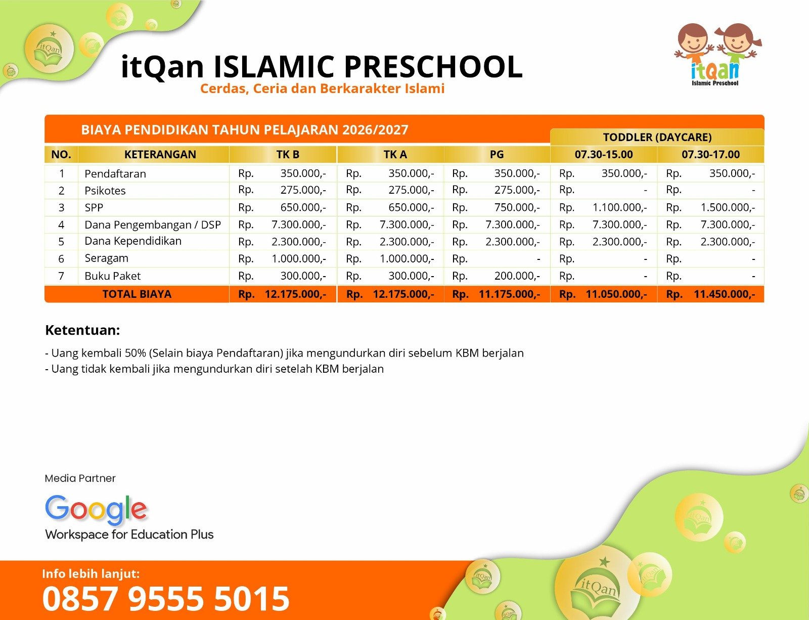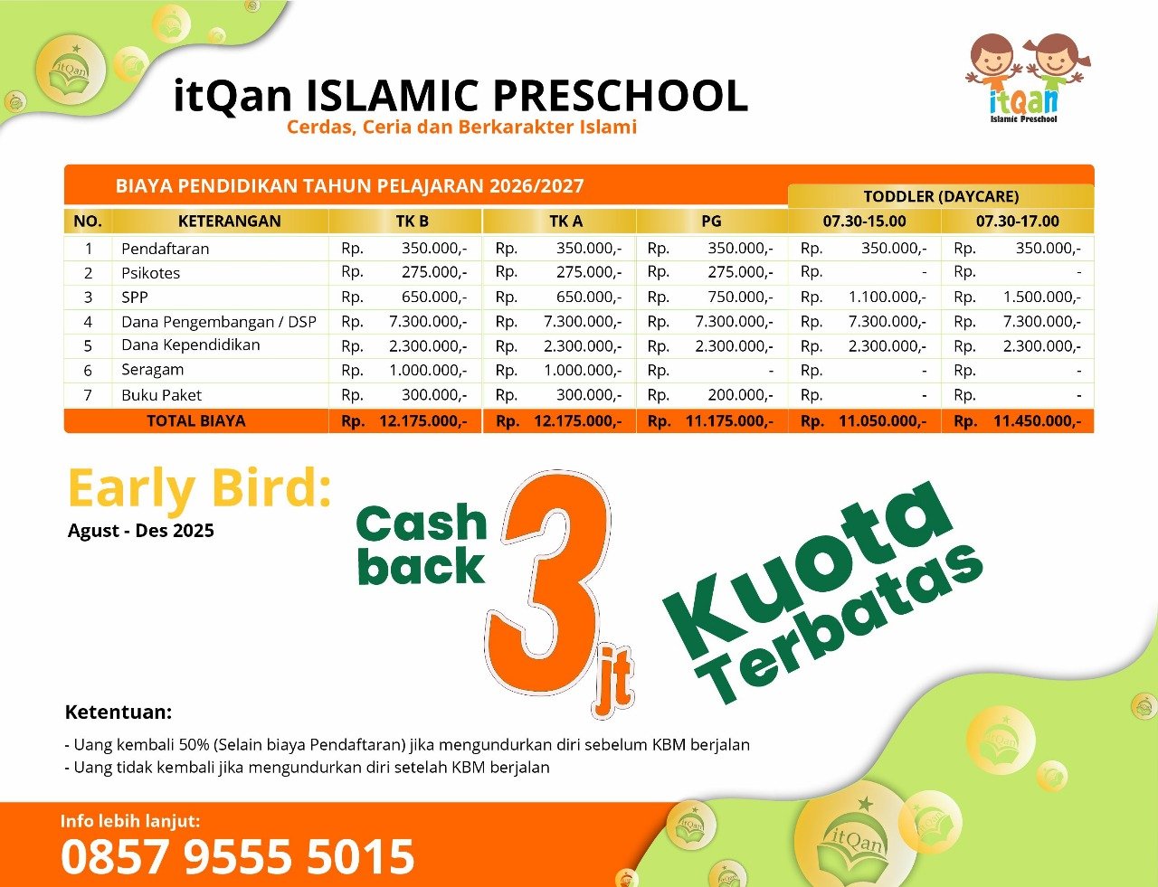 Saya Dewi Mulyani, orang tua Giorgio Ammar Virendra (Babang Gio). Babang Gio mengalami perubahan positif dalam ibadah, akhlak, dan akademiknya sejak sekolah di TK ITQan Islamic Preschool. Sekolah itQan membantu memantau perkembangan anak, menciptakan pengalaman belajar yang menyenangkan, dan menjadi mitra terbaik dalam mendidik anak-anak. Terima kasih kepada guru dan kepala sekolah atas sistem bermain sambil belajar yang mengasyikkan. Semoga ilmu yang diberikan bermanfaat bagi anak kami. Aammiin